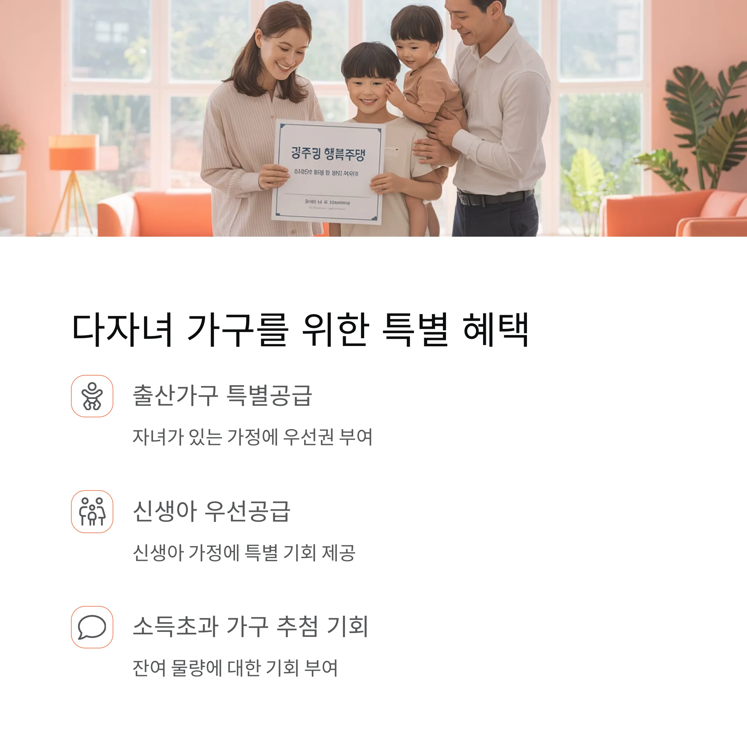 예를 들어 출산가구 특별공급, 신생아 우선공급과 같은 정책은 다자녀 가구가 기존보다 훨씬 높은 청약 경쟁력을 확보할 수 있도록 돕습니다.