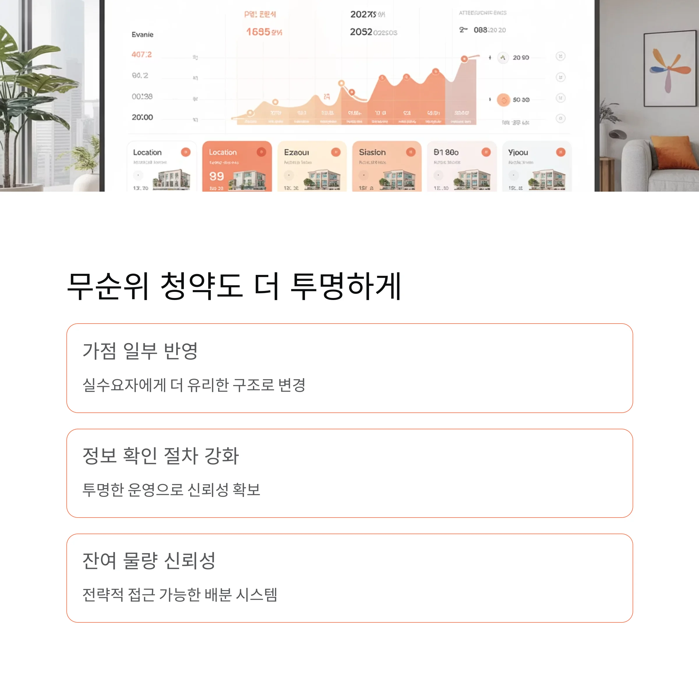 기존에는 무순위 청약 절차가 다소 폐쇄적으로 운영되었으나, 이제는 가점 일부 반영, 정보 확인 절차 강화 등으로 보다 투명하게 운영됩니다.