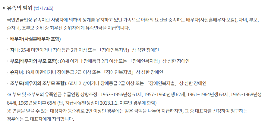 - 누가 받을 수 있나? 유족연금 수급 대상자