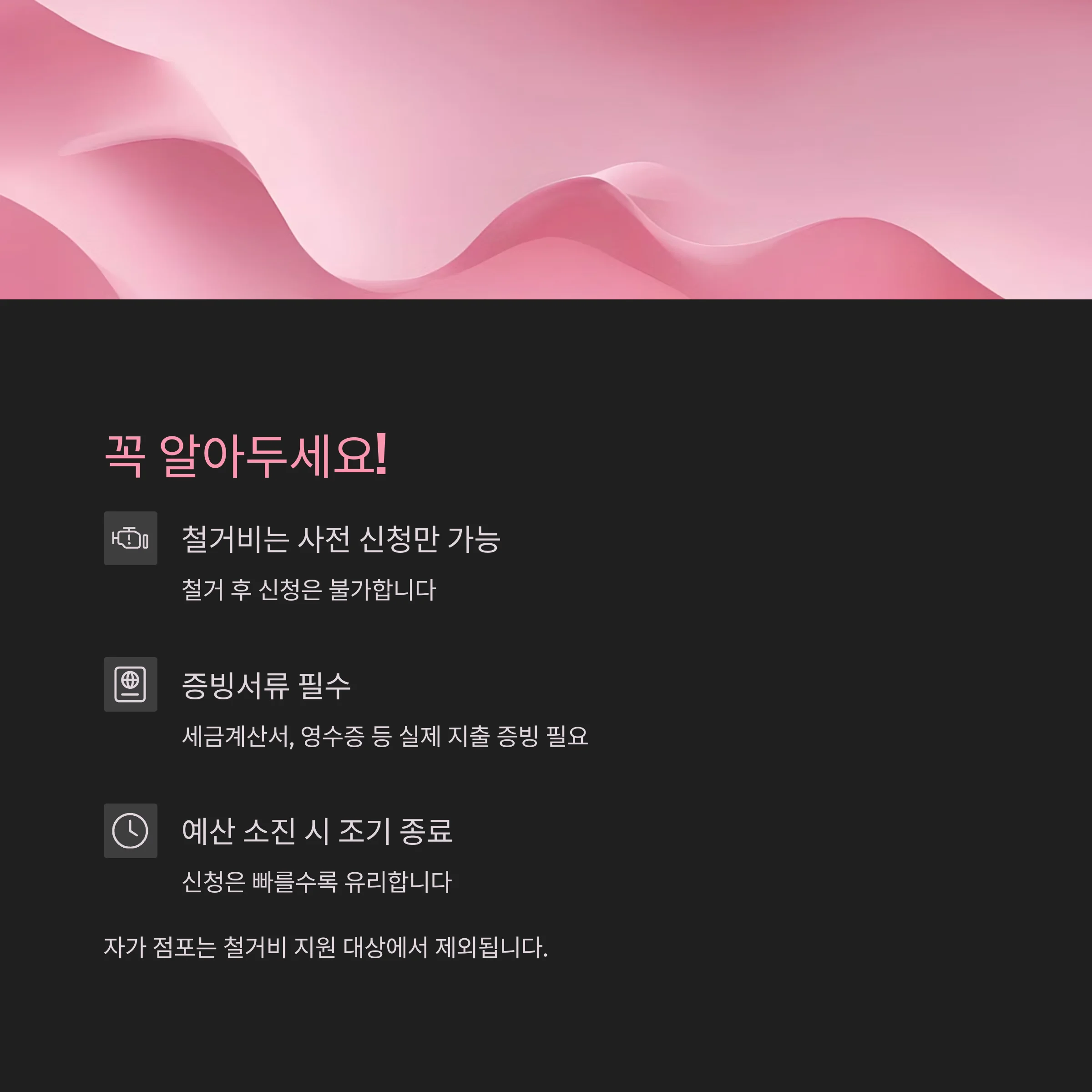 • 철거비는 철거 전 신청만 가능 (사후 신청 불가)