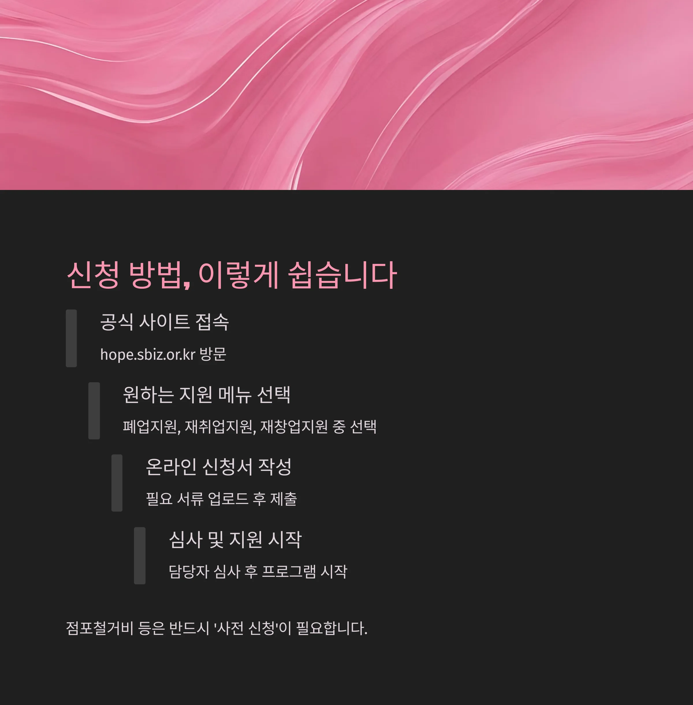 공식 사이트(hope.sbiz.or.kr)에서 신청할 수 있으며,