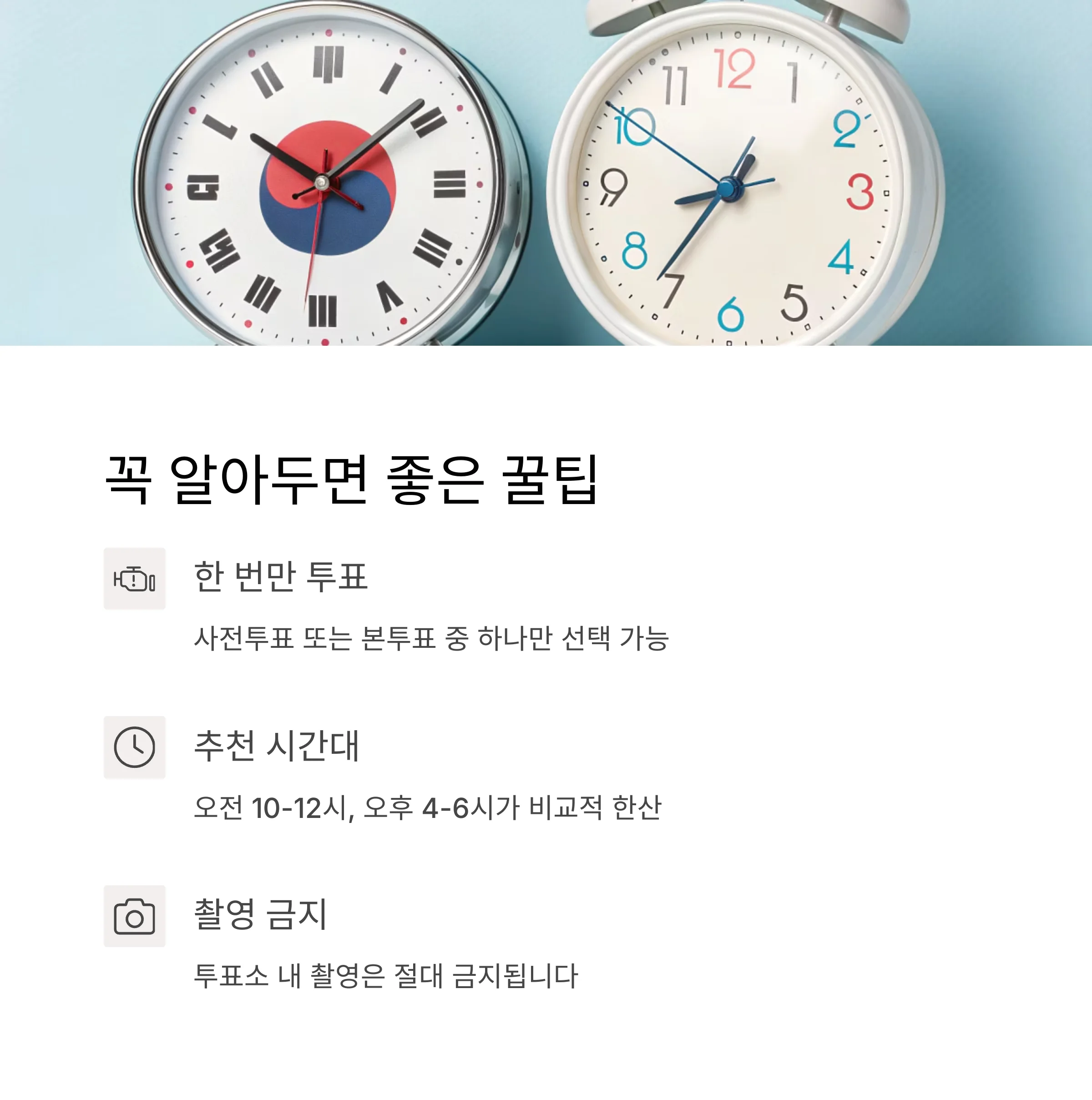 | 촬영 | 투표소 내 촬영 절대 금지 |