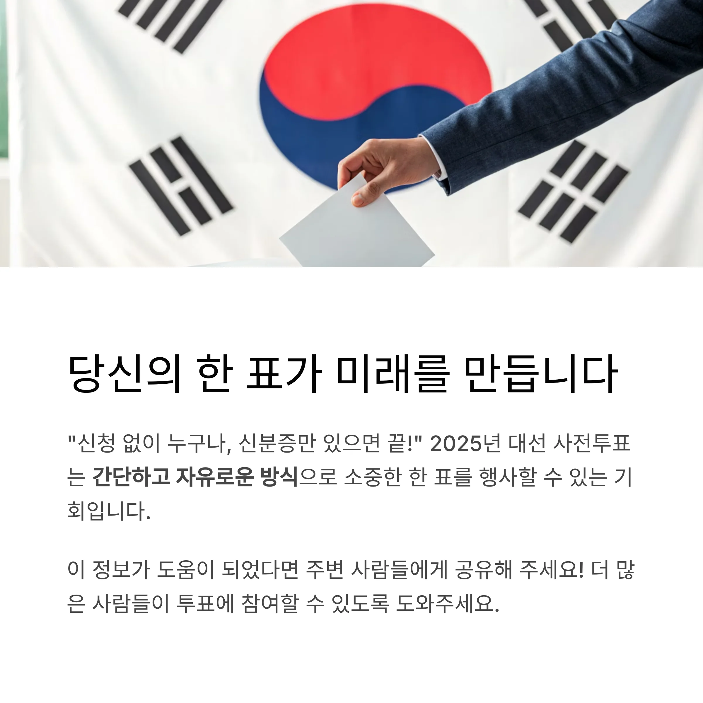 2025년 대통령선거 사전투표는 빠르고 간편한 방식으로 진행됩니다.