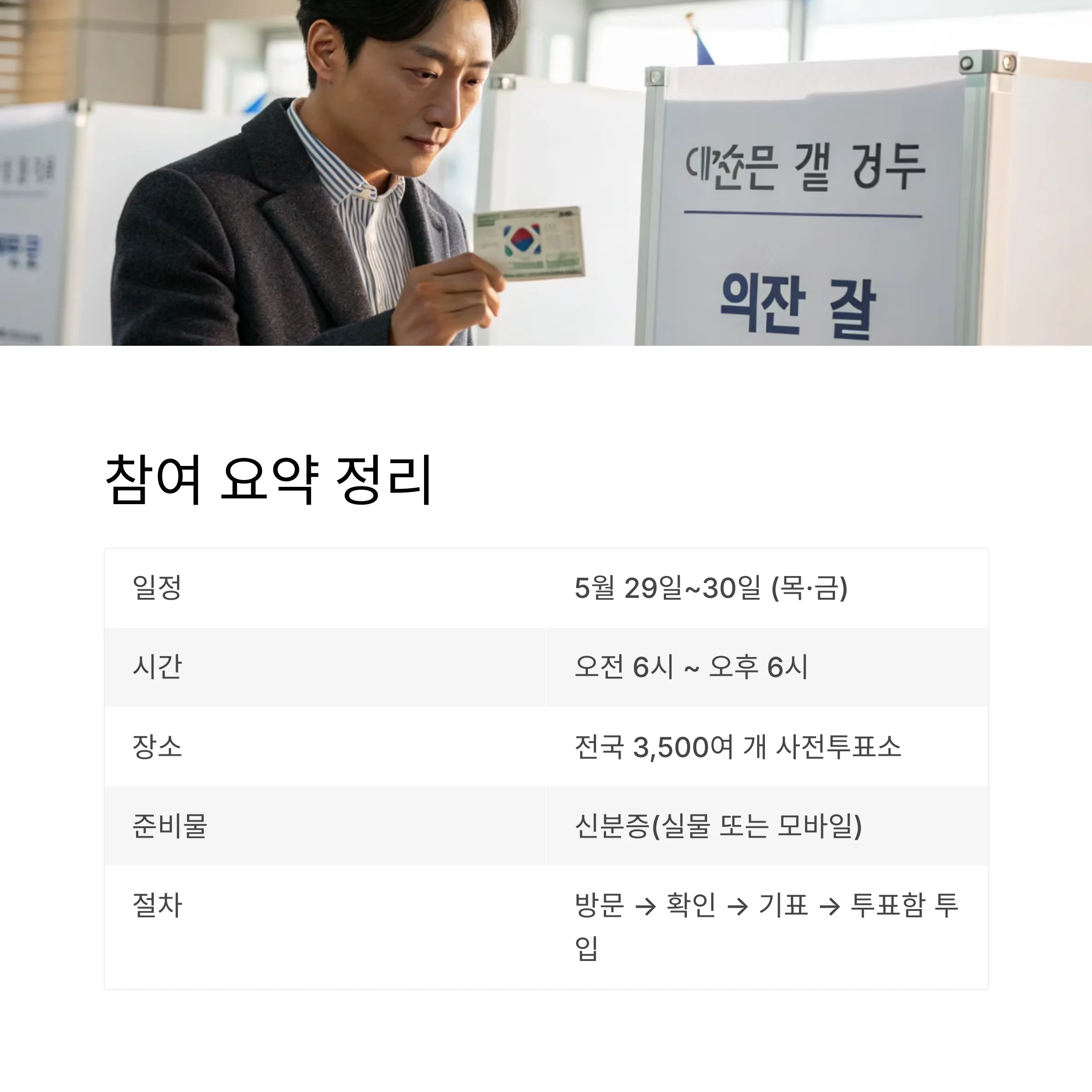 | 절차 | 방문 → 확인 → 기표 → 투표함 투입 |