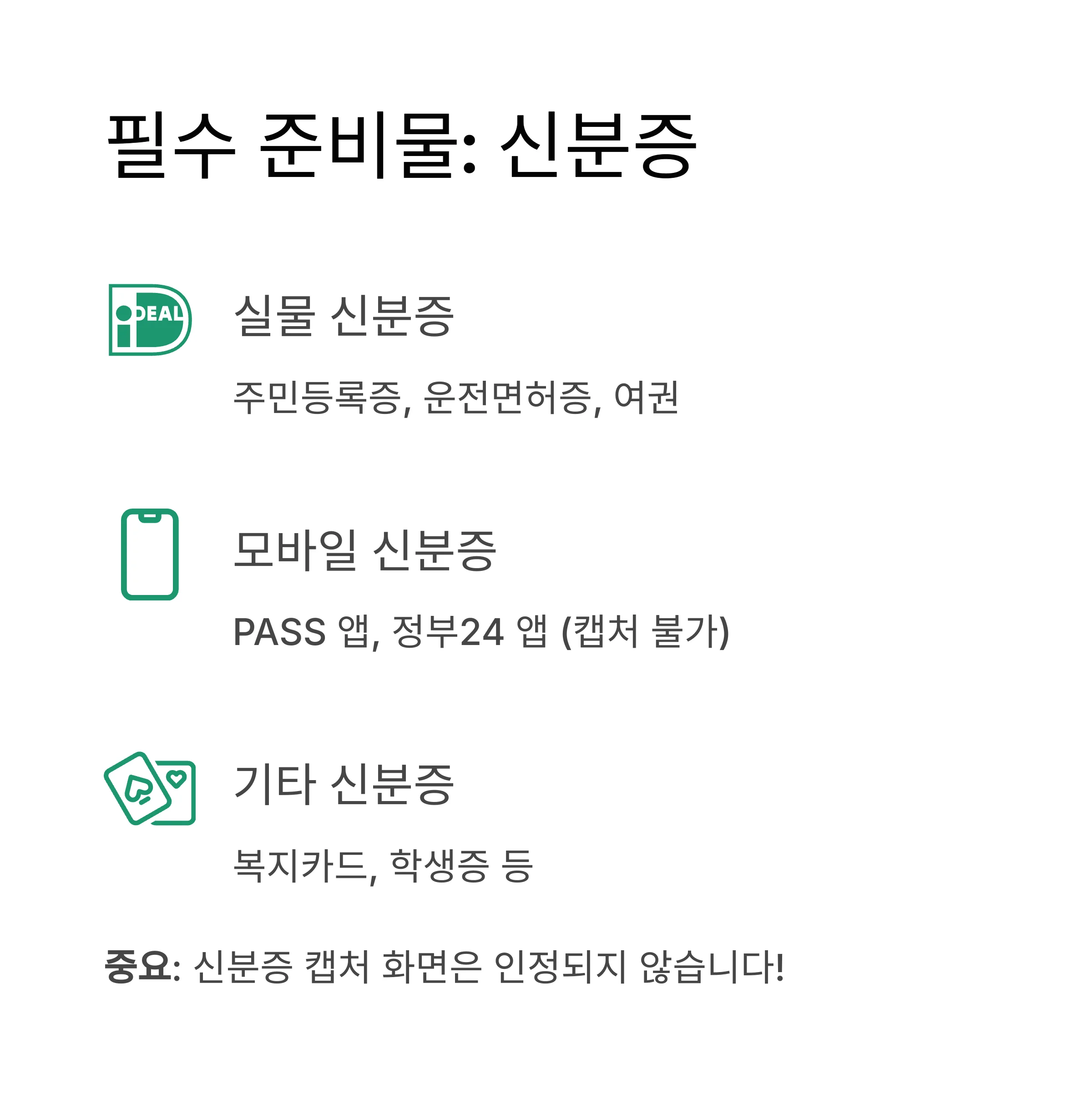 중요: 신분증 캡처 화면은 인정되지 않으며,