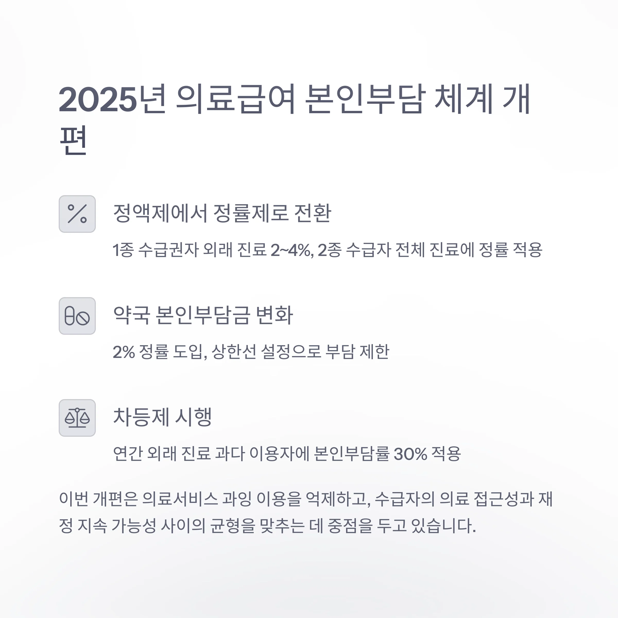 2025년부터는 진료비 기준 정률 부담 체계로 전환되어 진료비가 높을수록 부담도 늘어나는 구조로 바뀝니다.