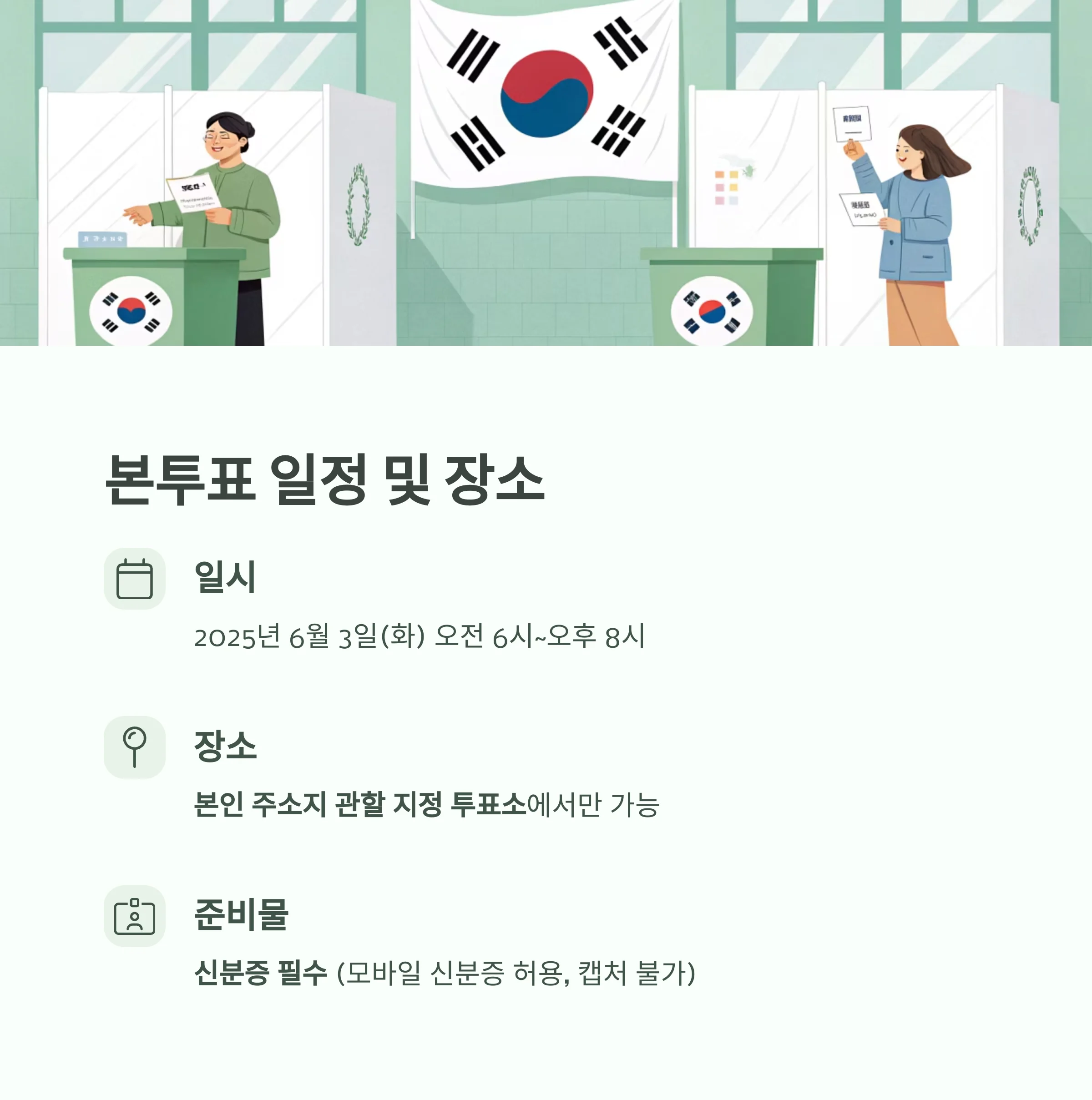 | 2025 사전투표소 찾기 방법과 빠르게 끝내는 투표 절차 정리 (0) | 2025.05.28 |