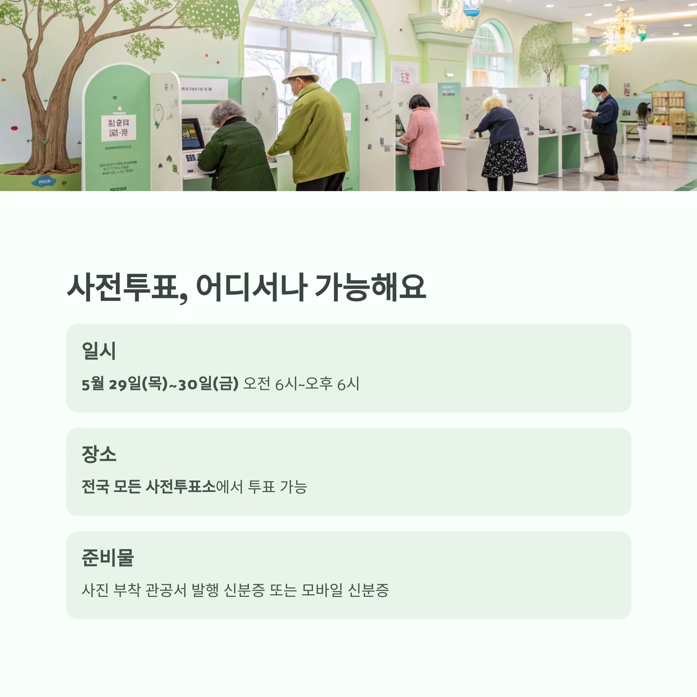 사전투표는 5월 29일(목)부터 30일(금)까지 이틀간 진행됩니다.