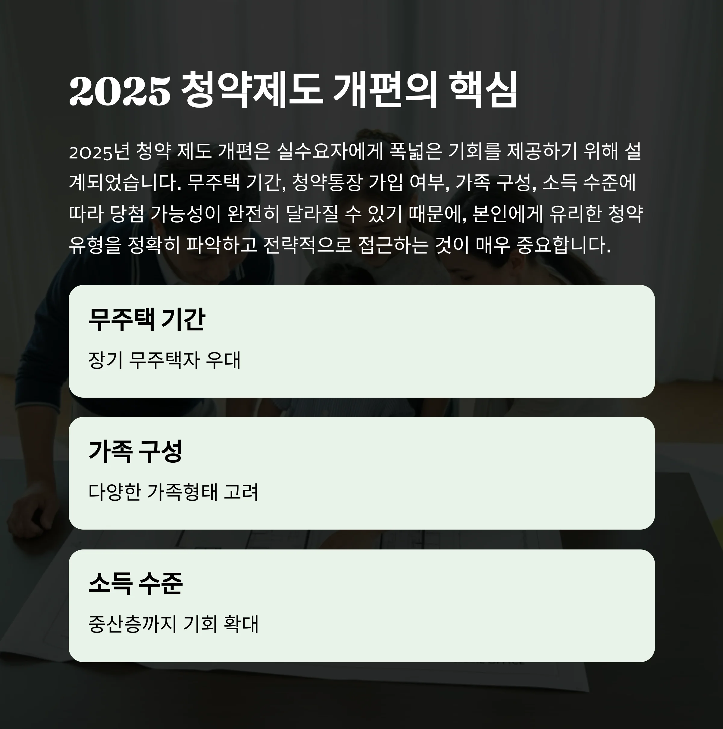 기존보다 넓은 소득 계층이 청약에 접근 가능해졌습니다.