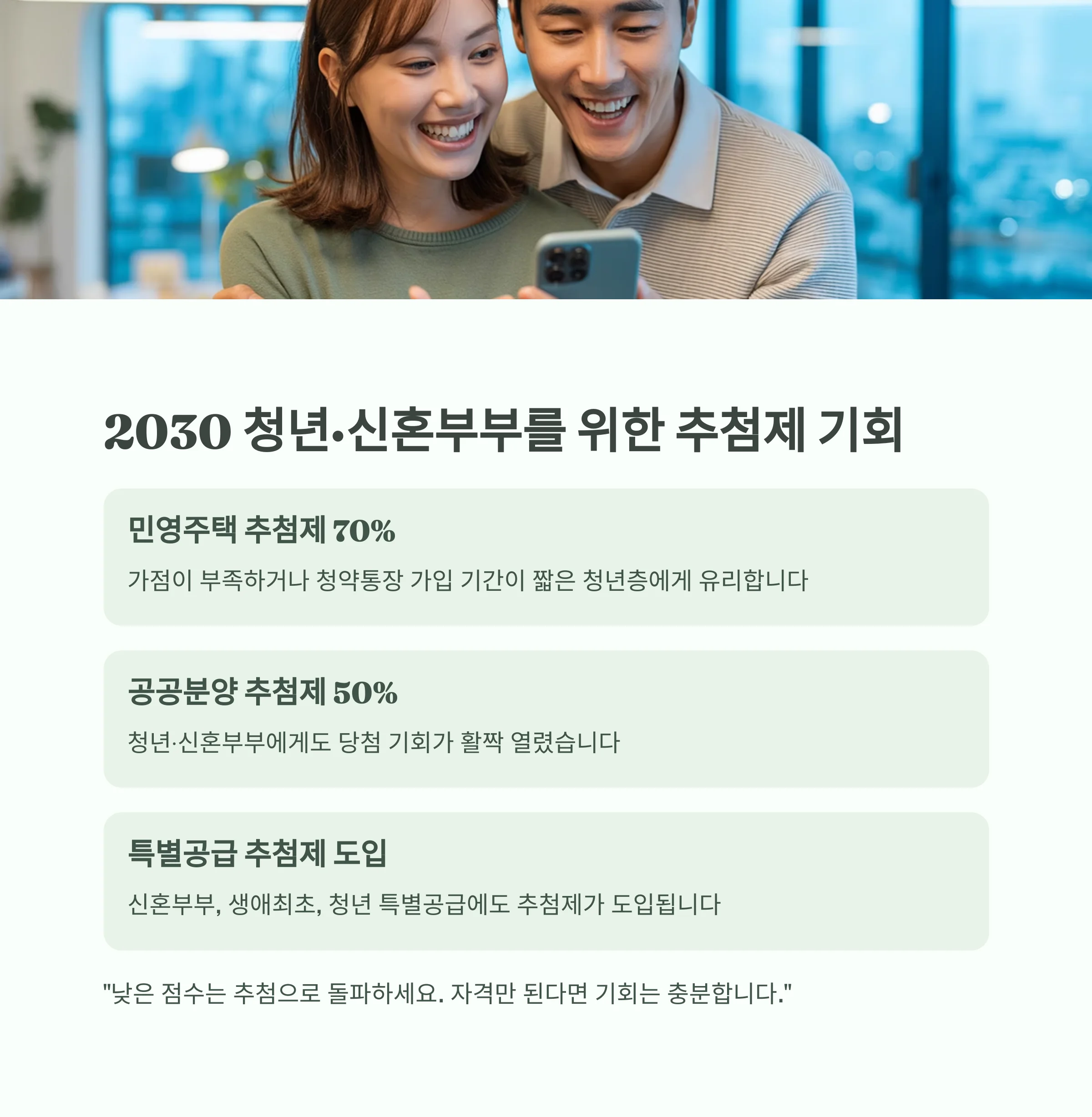 청년·신혼부부에게도 당첨 기회가 활짝 열렸습니다.