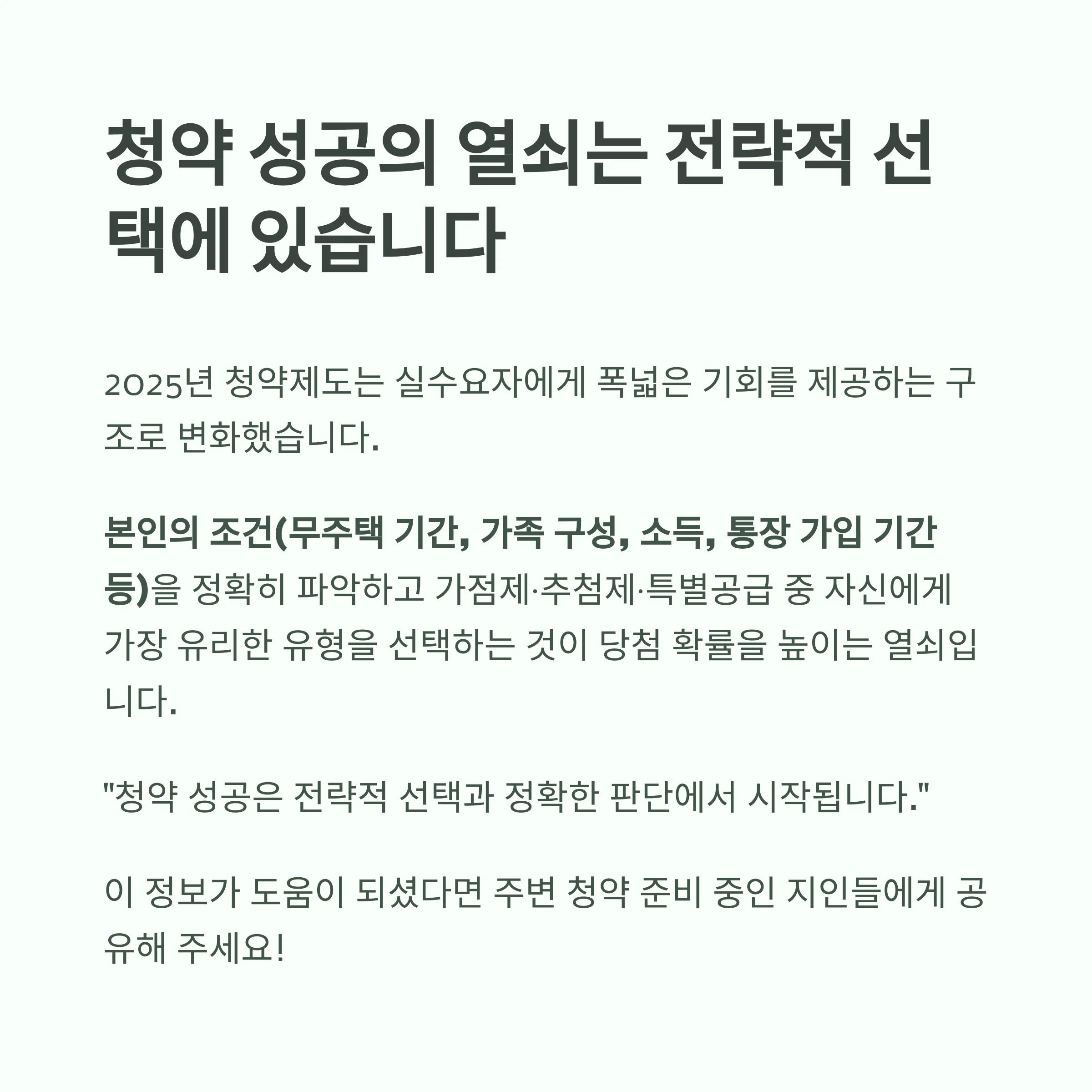 "청약 성공은 전략적 선택과 정확한 판단에서 시작됩니다."