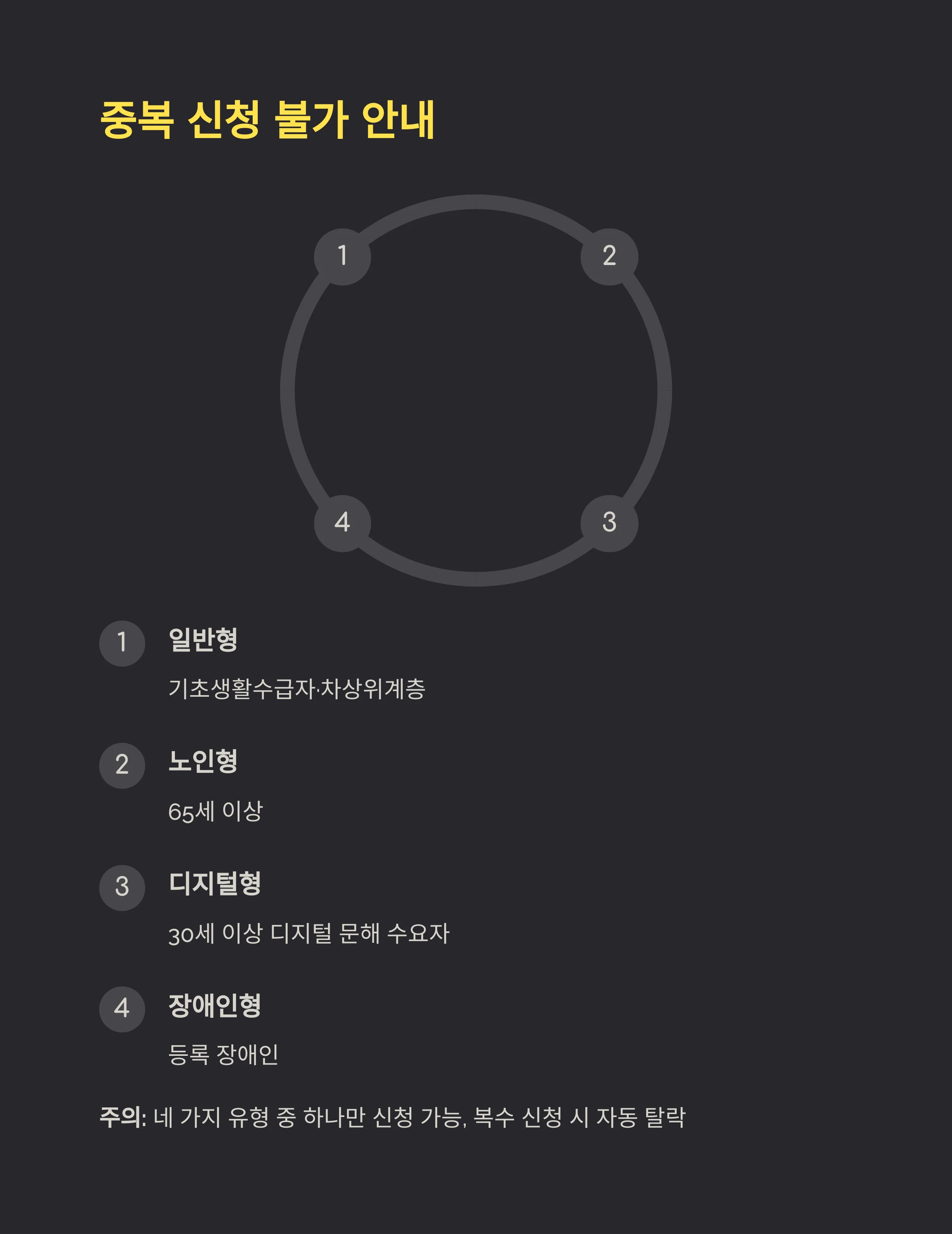 중복 신청은 불가, 대상별 단일 지원만 가능