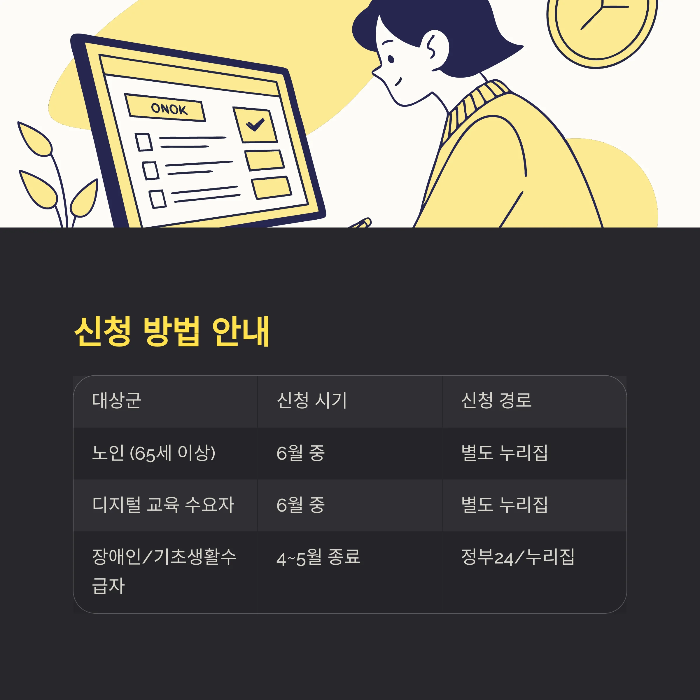 각 대상별로 맞춤형 경로를 통해 간편하게 신청할 수 있습니다.