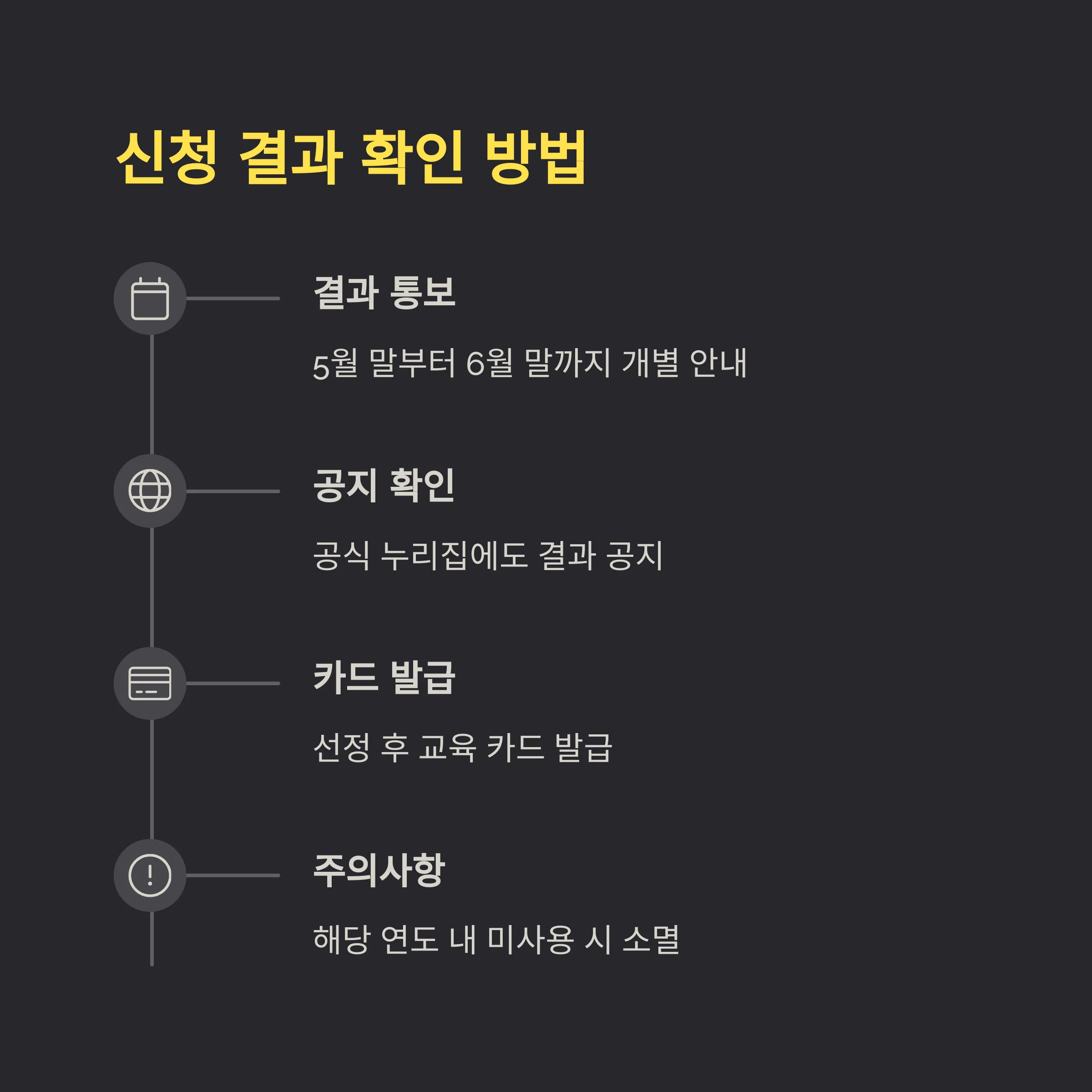 선정 이후, 교육 카드가 발급되며, 해당 연도 내 사용하지 않으면 소멸되므로