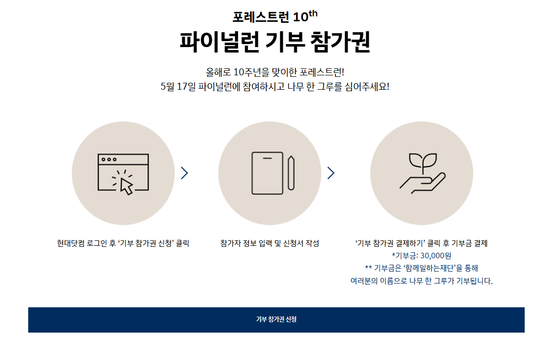 더 자세한 정보와 참가 신청은 현대자동차 공식 홈페이지의 포레스트런 페이지를 참고하시기 바랍니다.