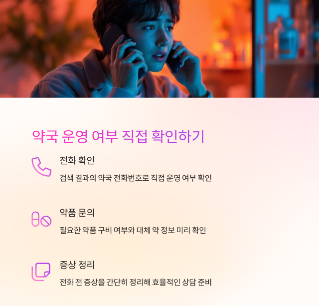 전화할 때는 "지금도 약국 여나요?" 정도만 확인해도 충분합니다.