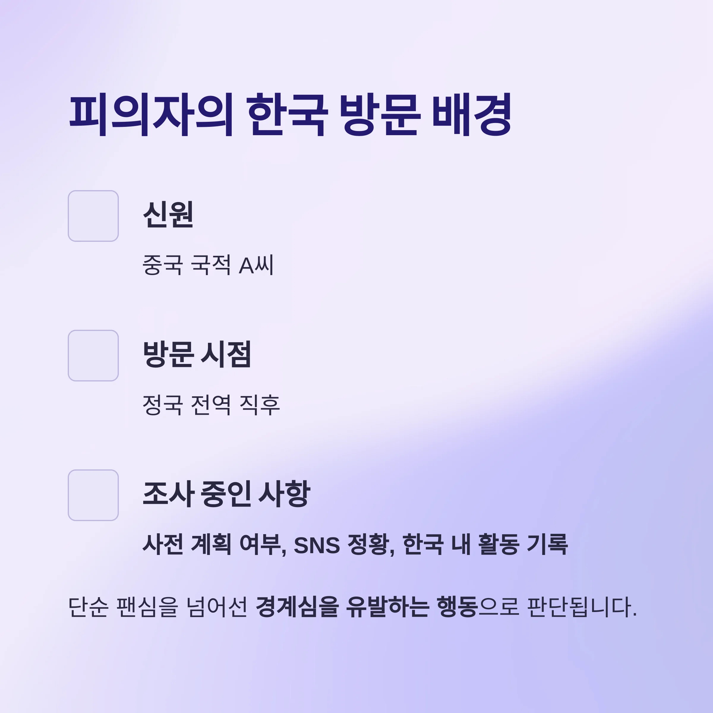 사전 계획 여부, SNS에서의 정황, 한국 내 활동 기록 등이 함께 분석되고 있습니다.