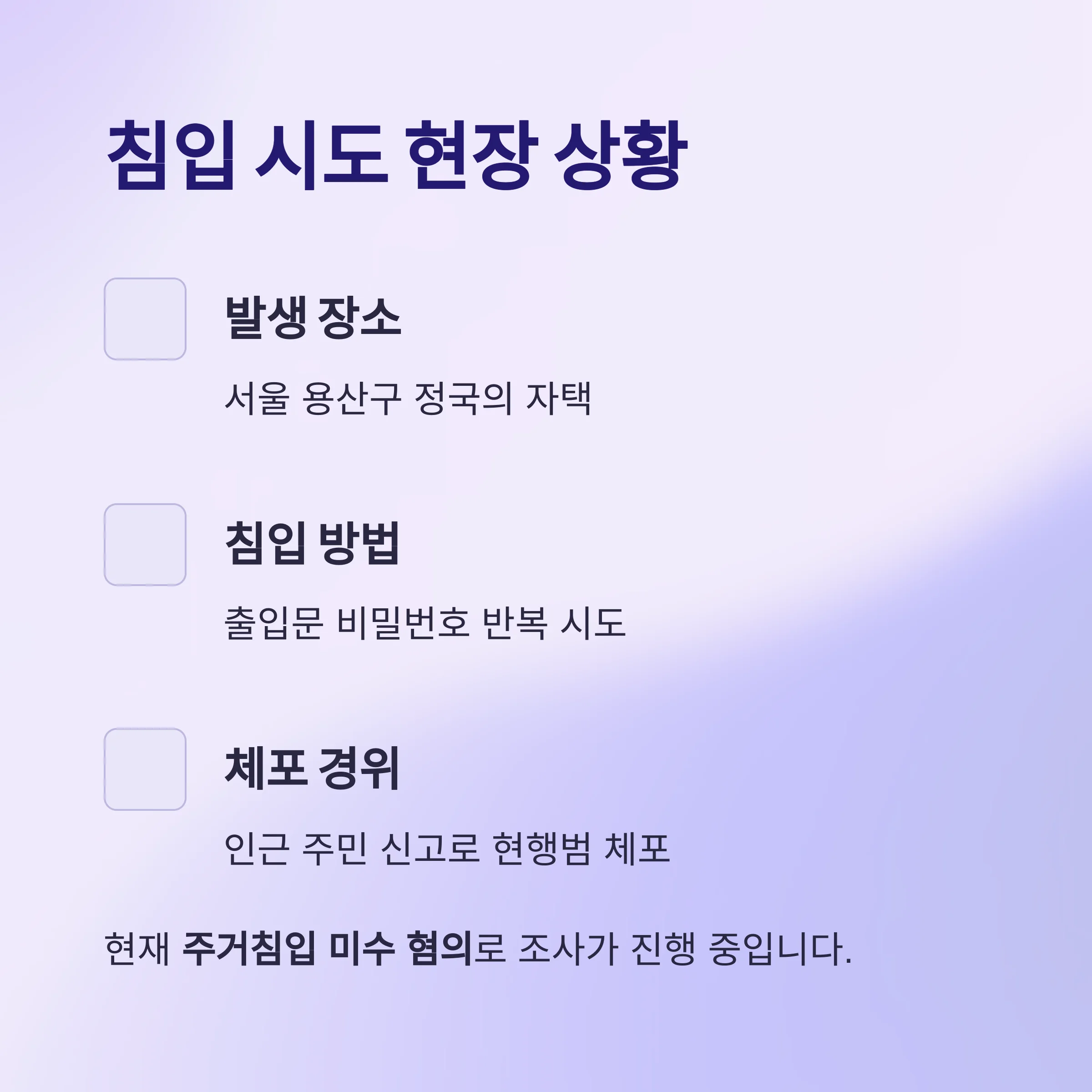 | 혐의 | 주거침입 미수 |