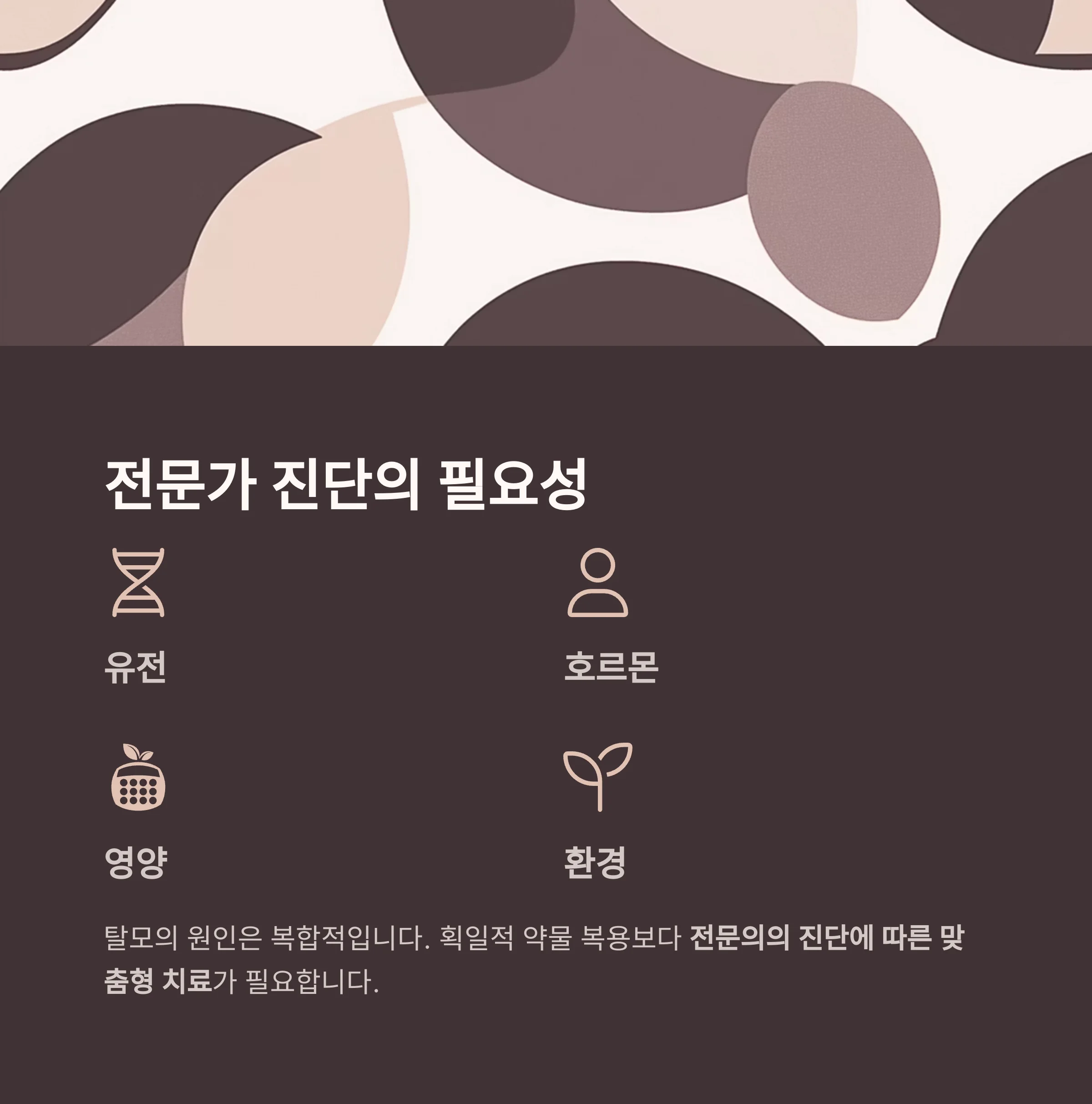 탈모의 원인은 유전, 호르몬, 영양, 환경 등 복합적입니다