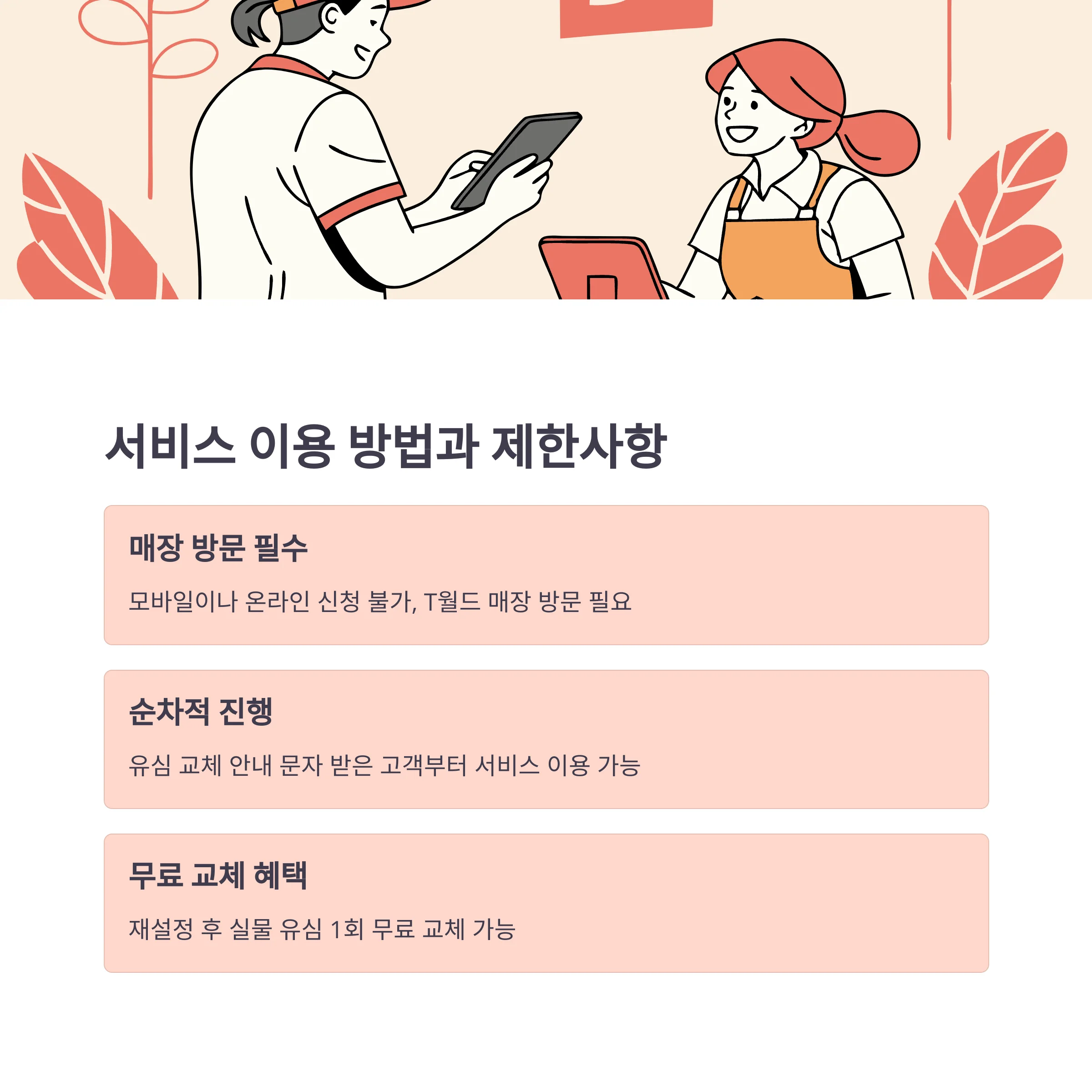 SK텔레콤 대리점(T월드 매장)에 직접 방문해야 하며,