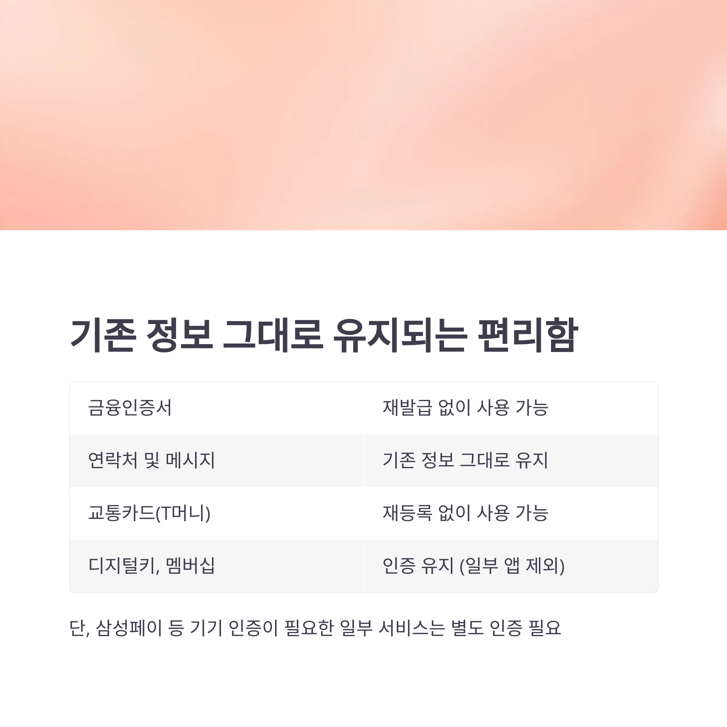 기존 정보는 그대로 유지, 인증 재설정 없는 편리함