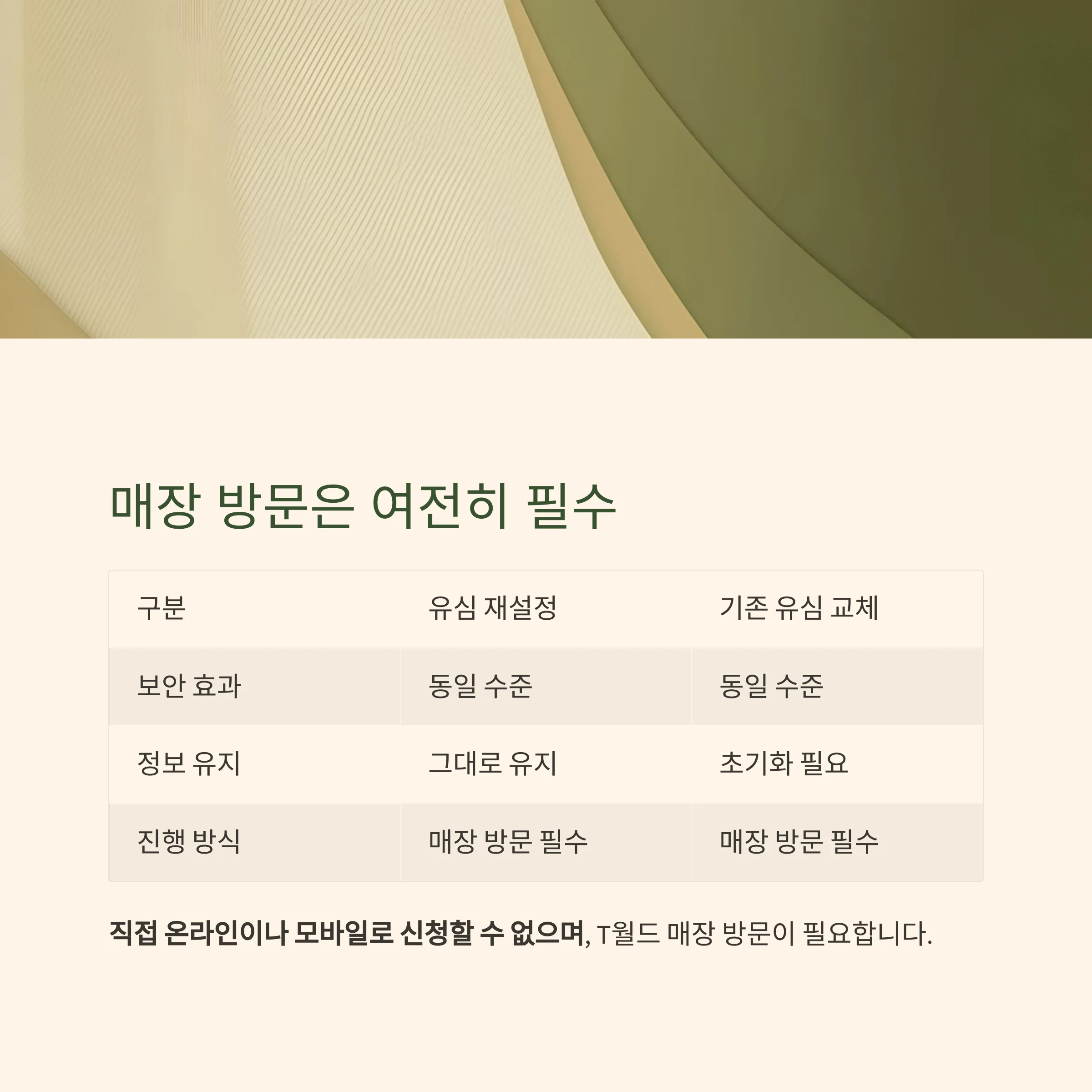 반드시 SK텔레콤 대리점(T월드 매장)에 방문해야 하며,