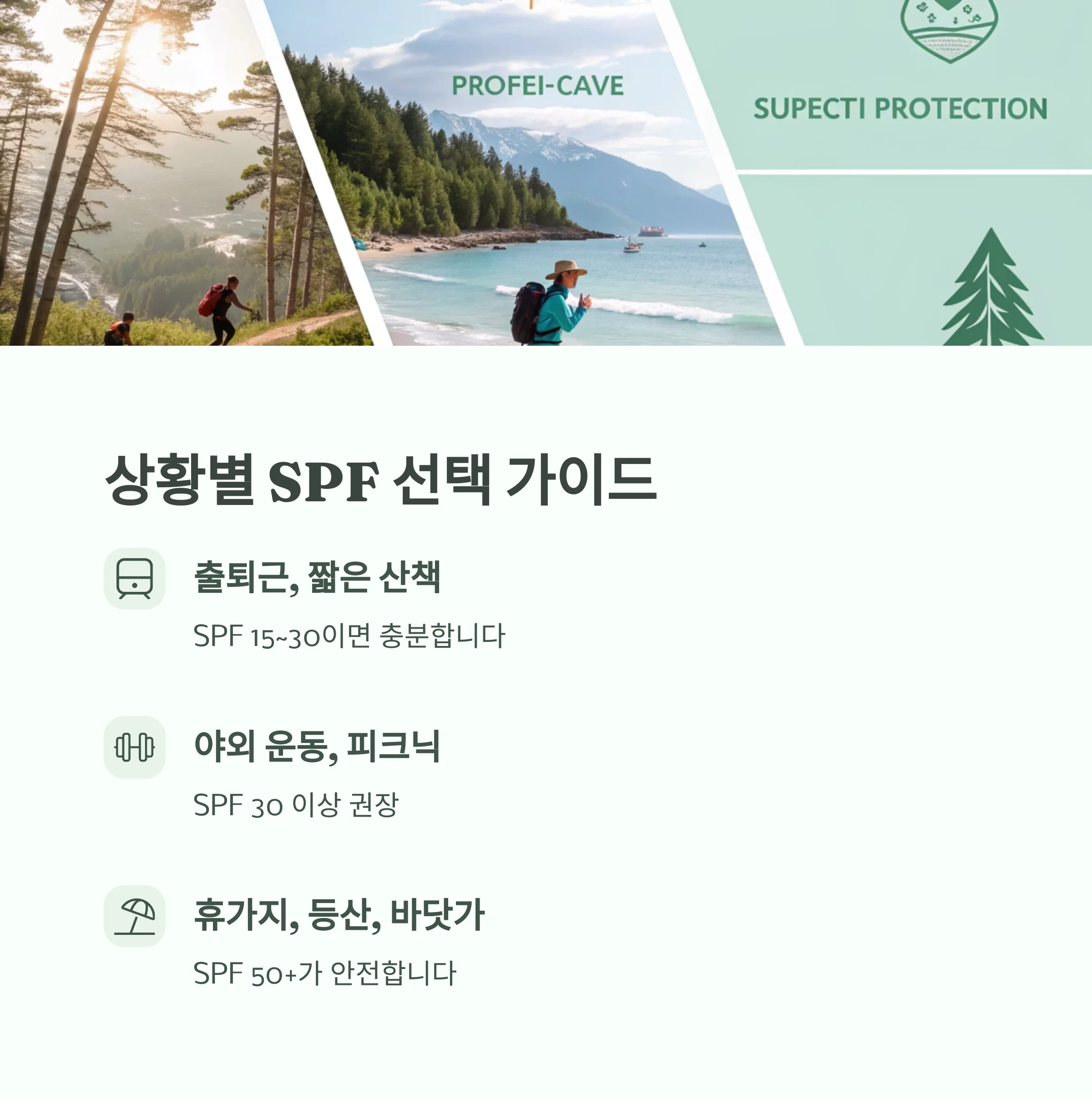 - 출퇴근, 짧은 산책: SPF 15~30이면 충분합니다