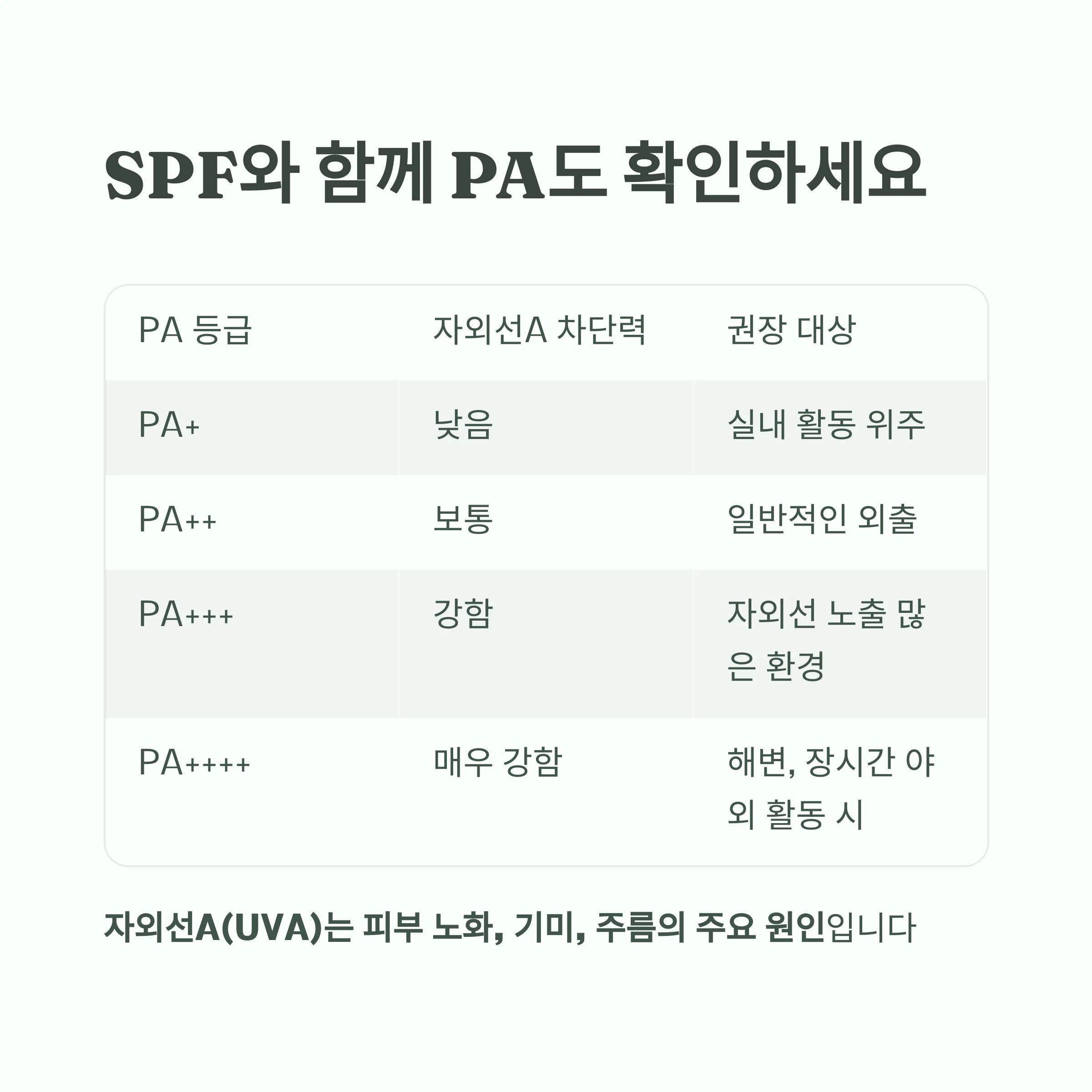 | PA++++ | 매우 강함 | 해변, 장시간 야외 활동 시 |