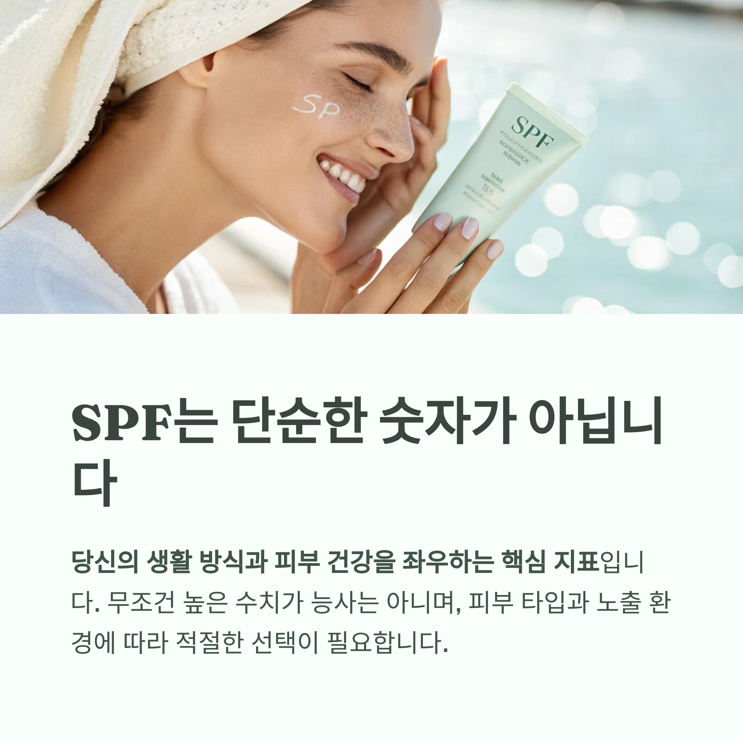 SPF는 단순한 숫자가 아닙니다. 당신의 생활 방식과 피부 건강을 좌우하는 핵심 지표입니다. 무조건 높은 수치를 고르는 것이 능사는 아니며, 피부 타입과 노출 환경에 따라 적절한 선택이 필요합니다. 이 글에서는 SPF의 과학적 의미부터 실제 선택 기준, 주의할 점까지 종합적으로 안내합니다.