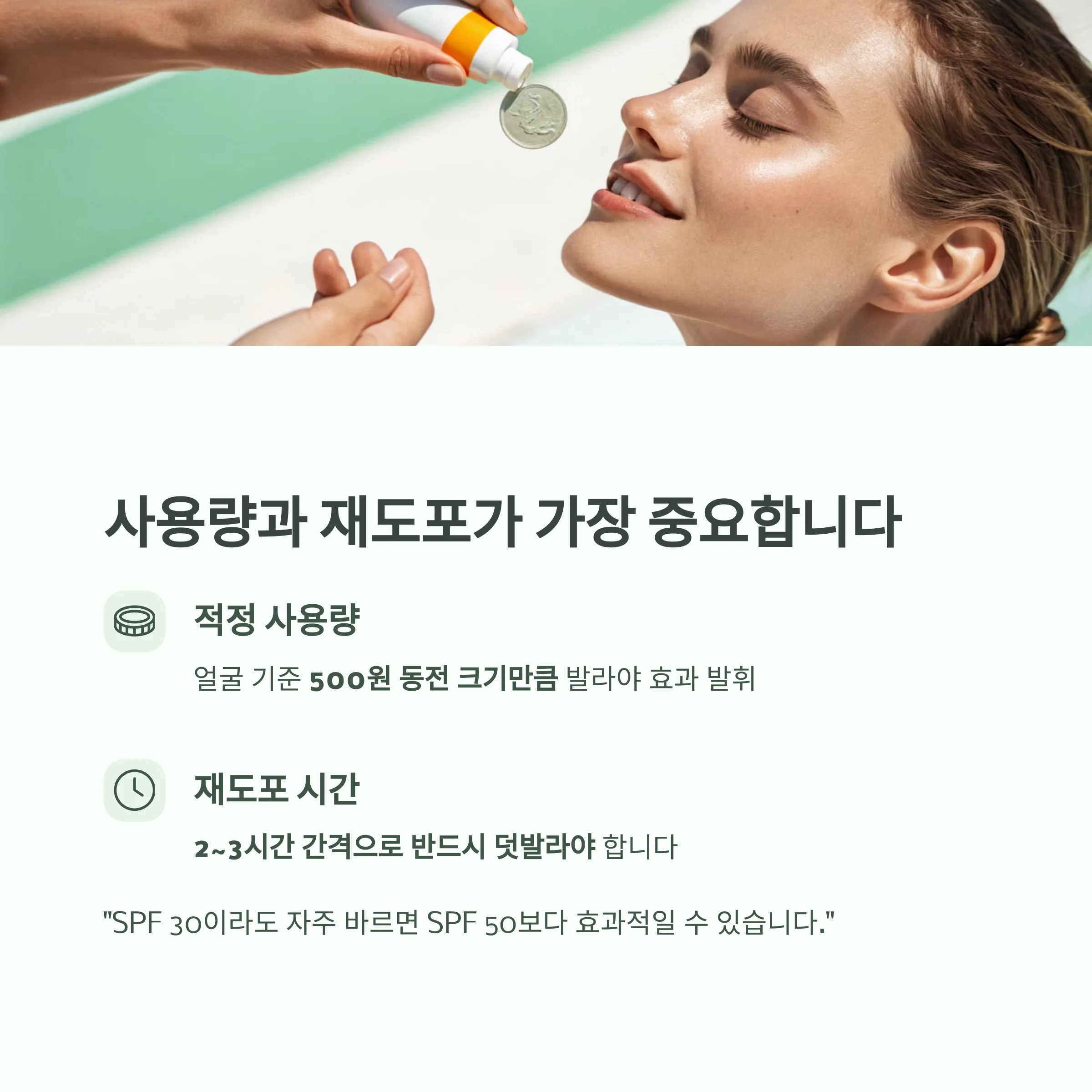 마지막으로, 정확한 사용량과 자주 바르는 습관이야말로 SPF 수치보다 훨씬 중요한 자외선 차단의 기본입니다.